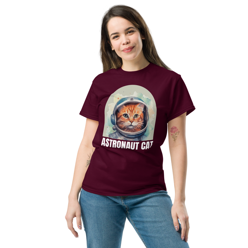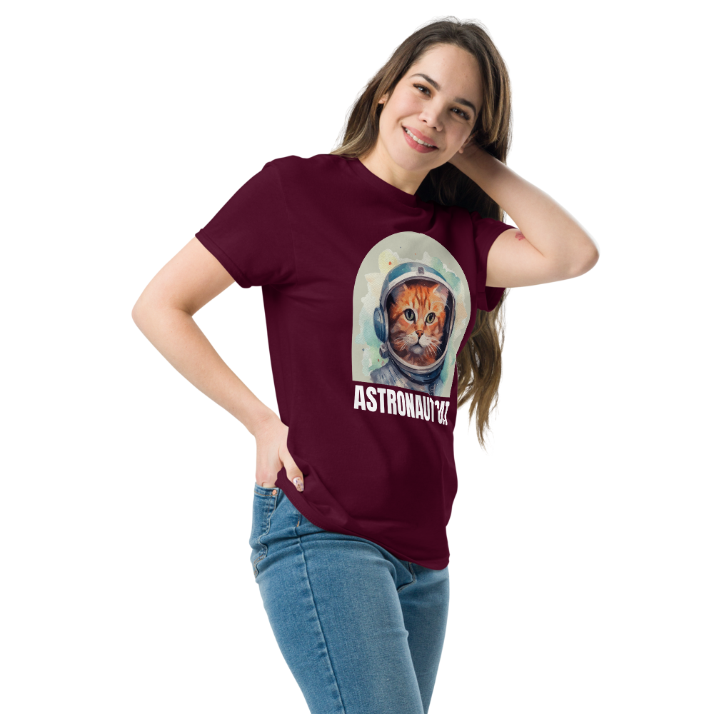 Comfortable Women's Astronaut Cat Lover Soft Cotton Short Sleeve T-Shirt