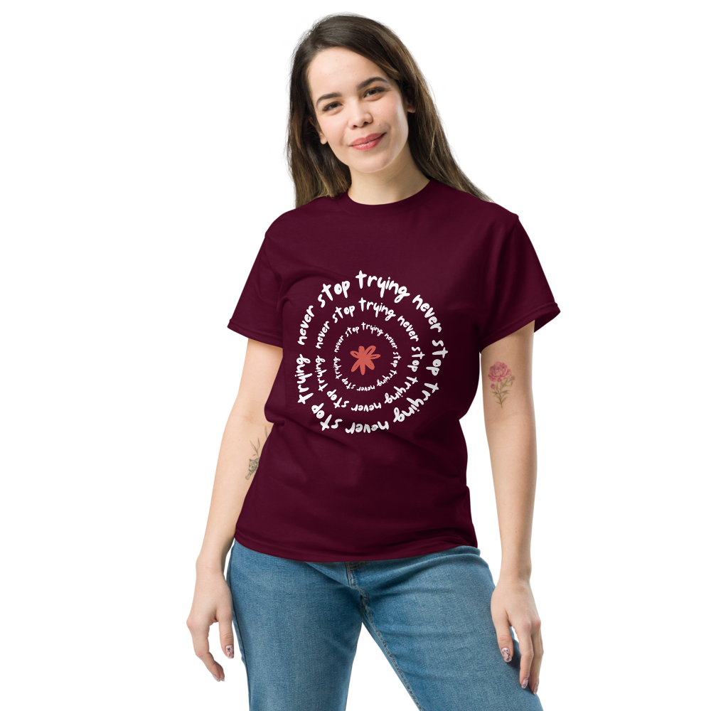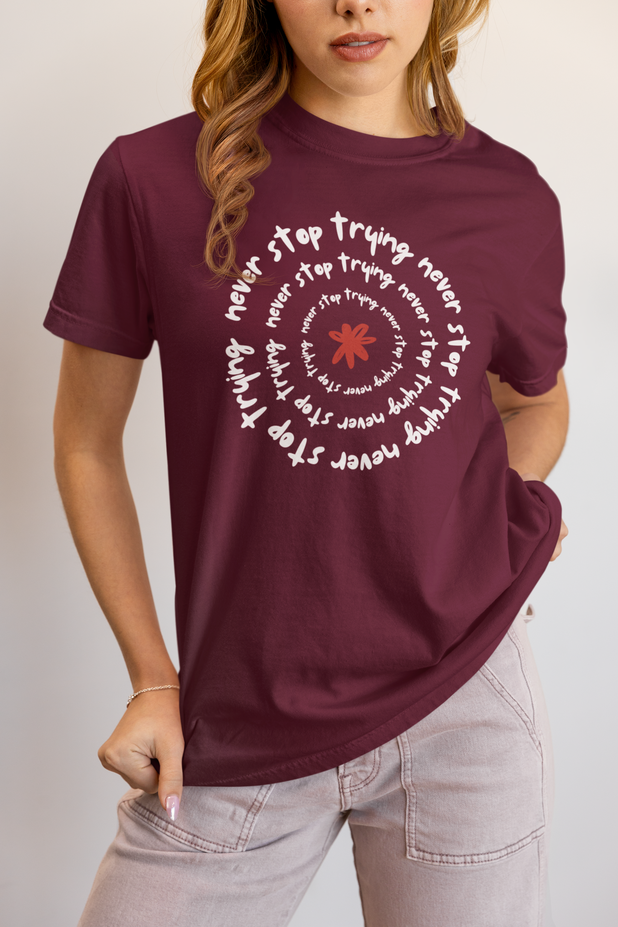 Comfortable Women's Motivational T-Shirt Never Stop Trying