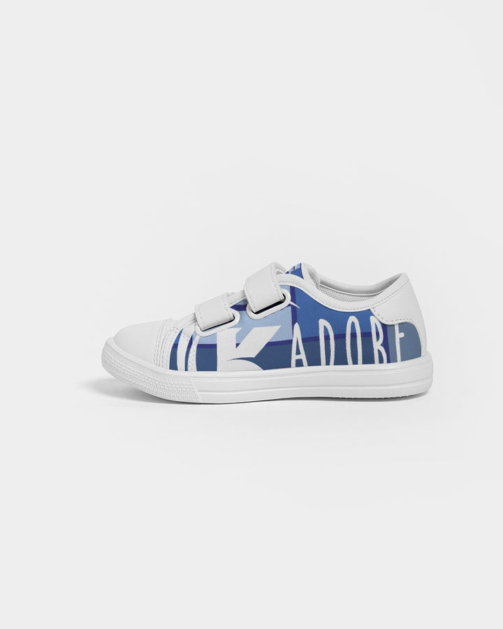 Introducing the Exclusive Kadobe 2.0 Abstract Blue Boxes Logo Kids Velcro Sneaker – the perfect combination of style and convenience for your little ones. Ditch the laces and opt for our Velcro Sneaker, which offers a durable and comfy shoe option for kids on the go.