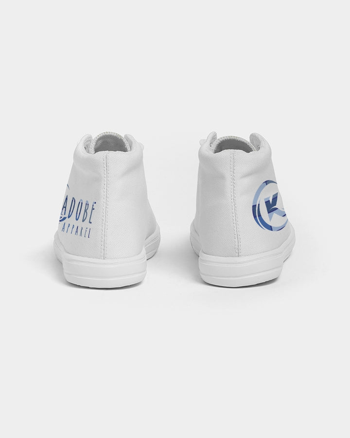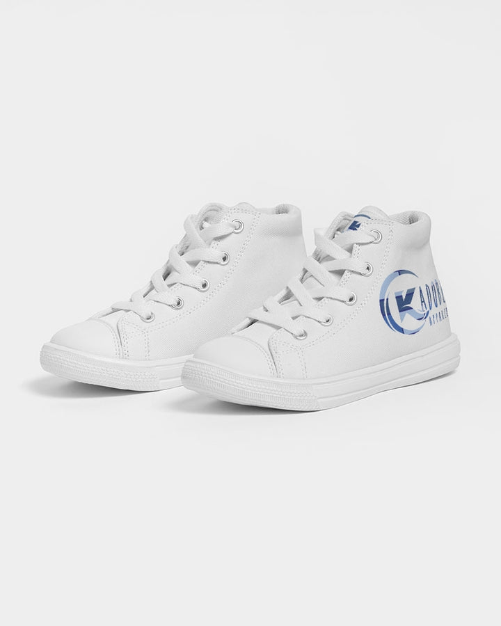 - Whether your child is running around at the park, going to school, or just hanging out with friends, these canvas shoes will keep their feet comfortable and looking great. Choose the Exclusive Kadobe Abstract Blue Boxes Logo Kids High-Top Canvas Shoe for the perfect combination of style and comfort for your child.