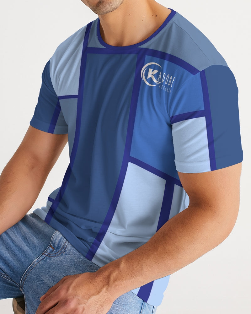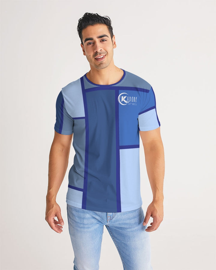 Exclusive Kadobe Abstract Blue Boxes Short Sleeve Crew Neck T Shirt