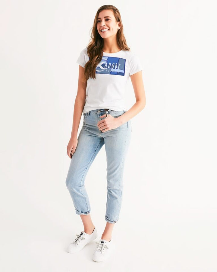 Exclusive Kadobe Women 2.0 Abstract Blue Boxes Logo Short Sleeve Crew Neck T Shirt