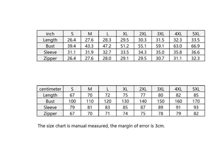 The size chart is manual measured, the margin of error is 3cm