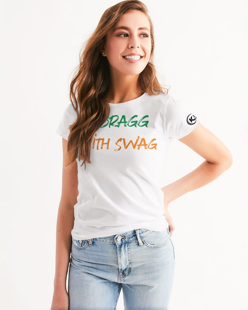 Kadobe Women I Bragg With Swag White Crew Neck Short Sleeve T Shirt