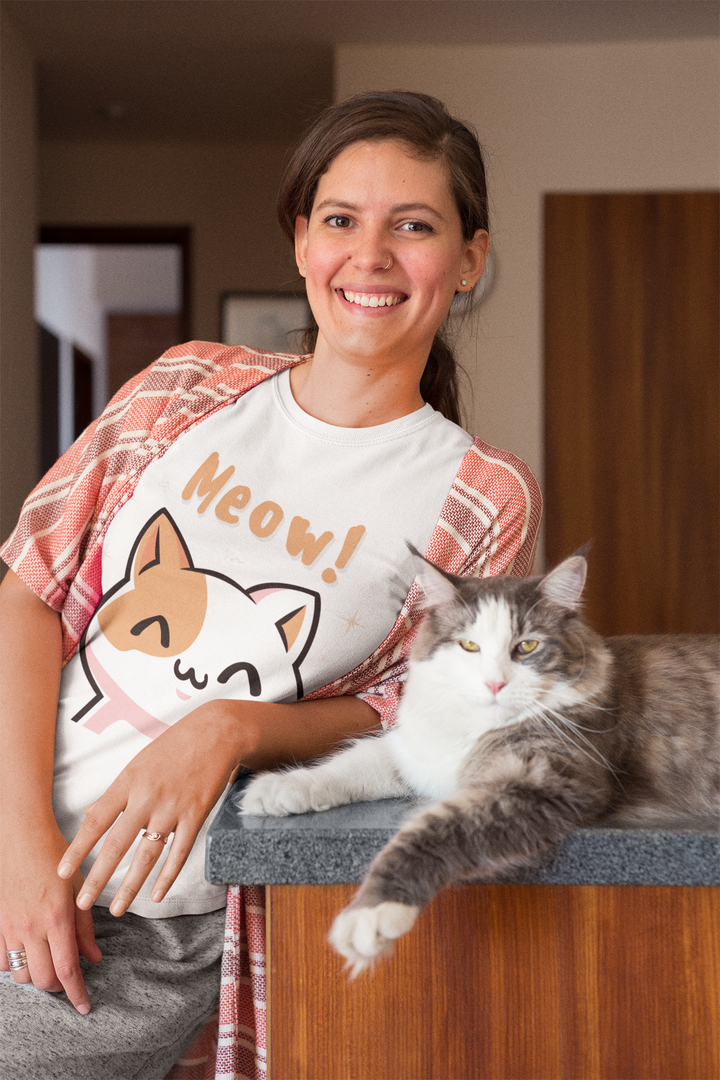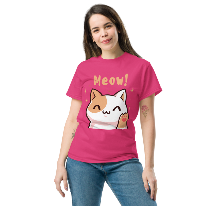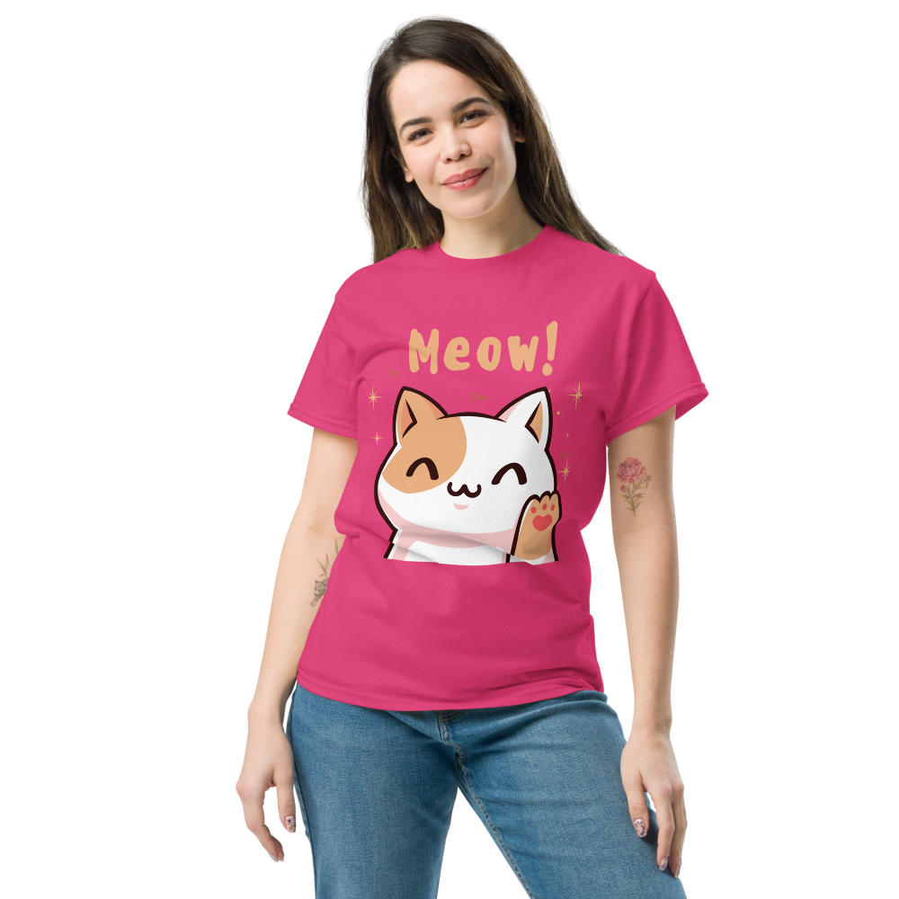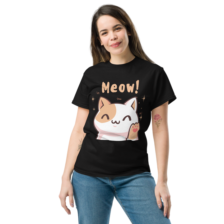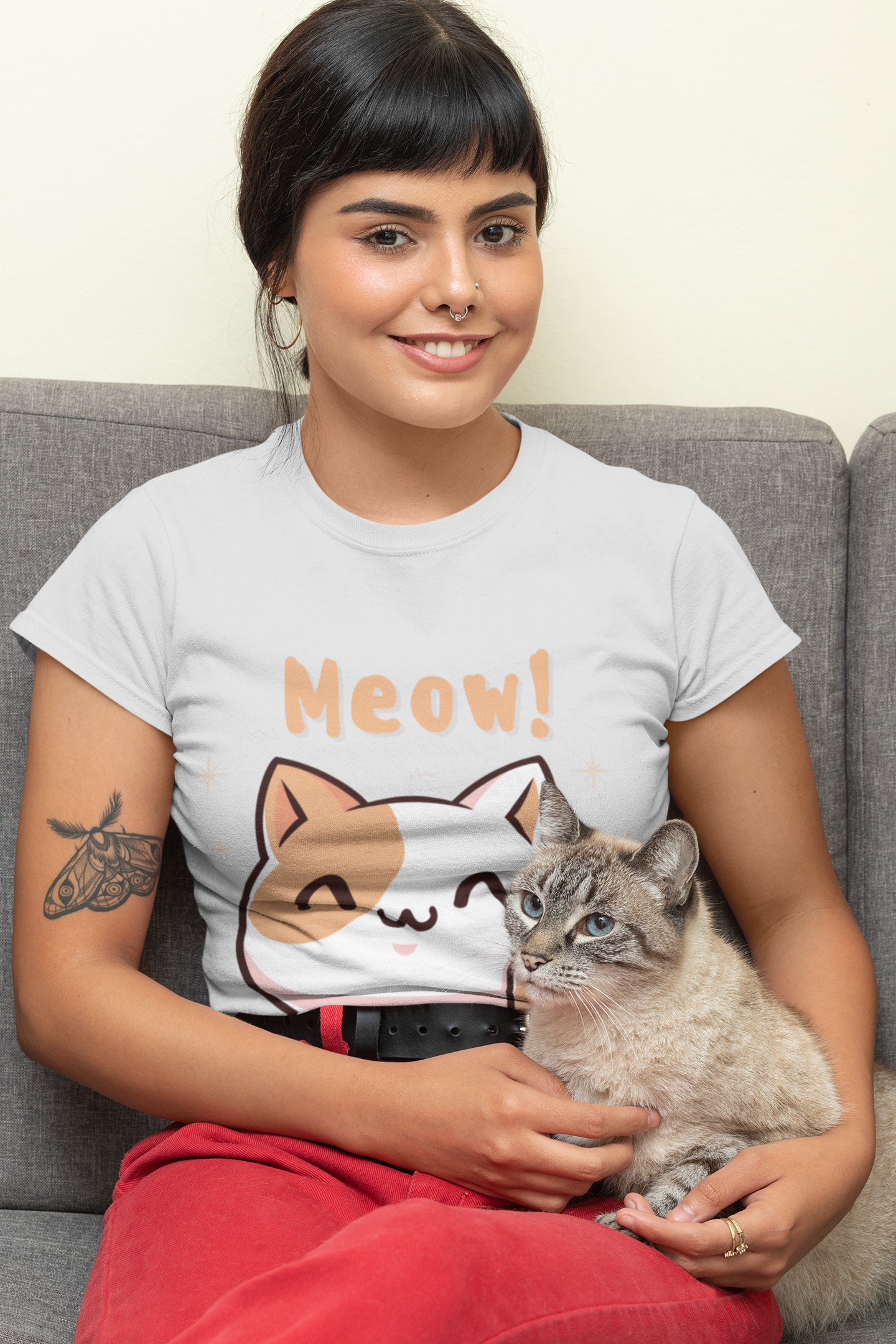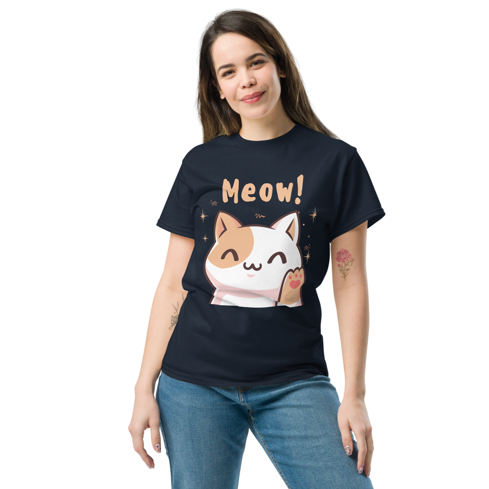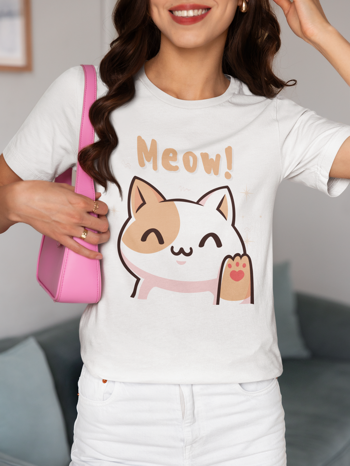 Women's Meow! Waving Cat T-Shirt | Cute Pet Tee